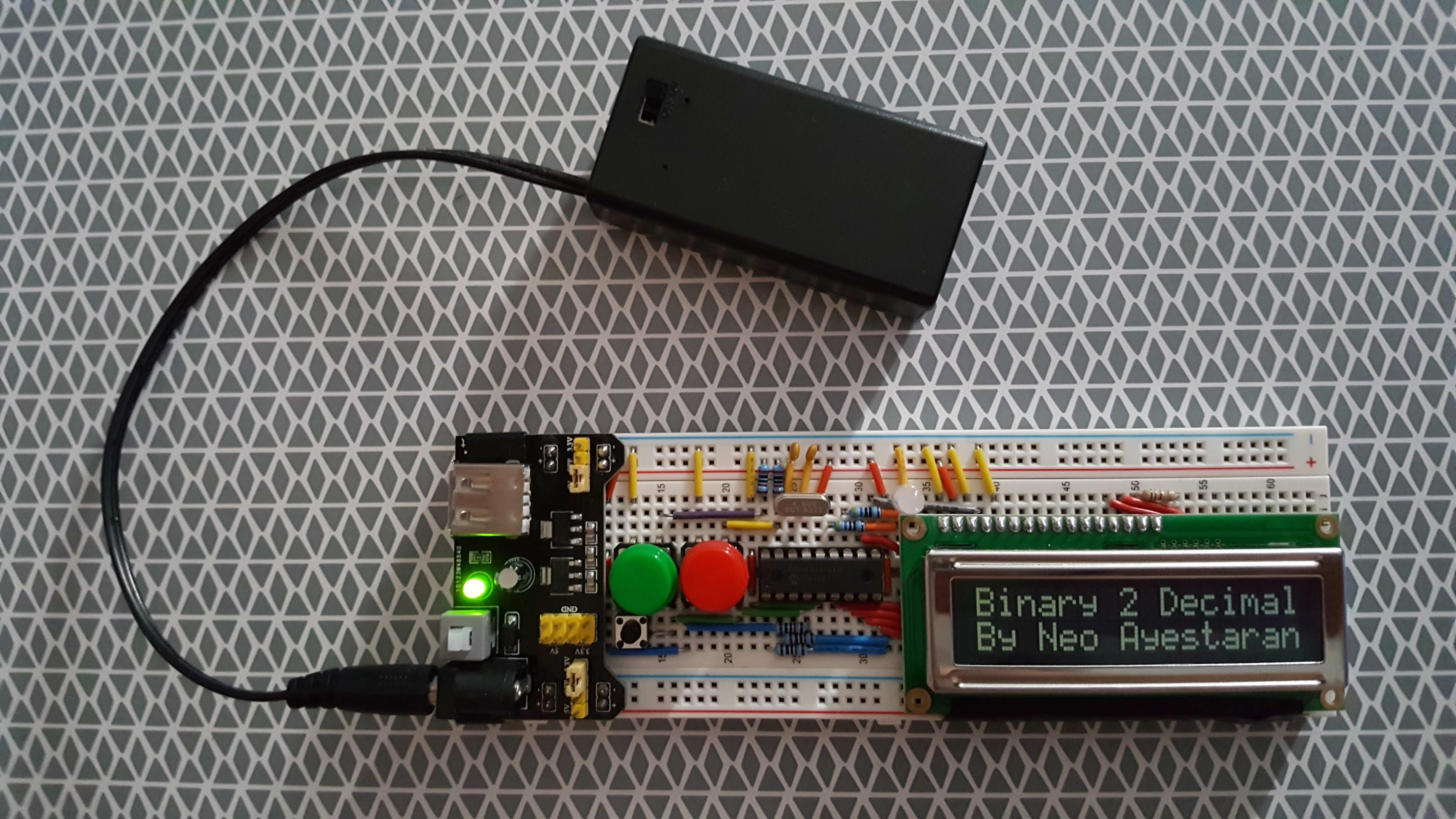 Demonstated how to create a 16 character message using the [UP] [DOWN] [ENTER] key via a 16×2 LCD Module.